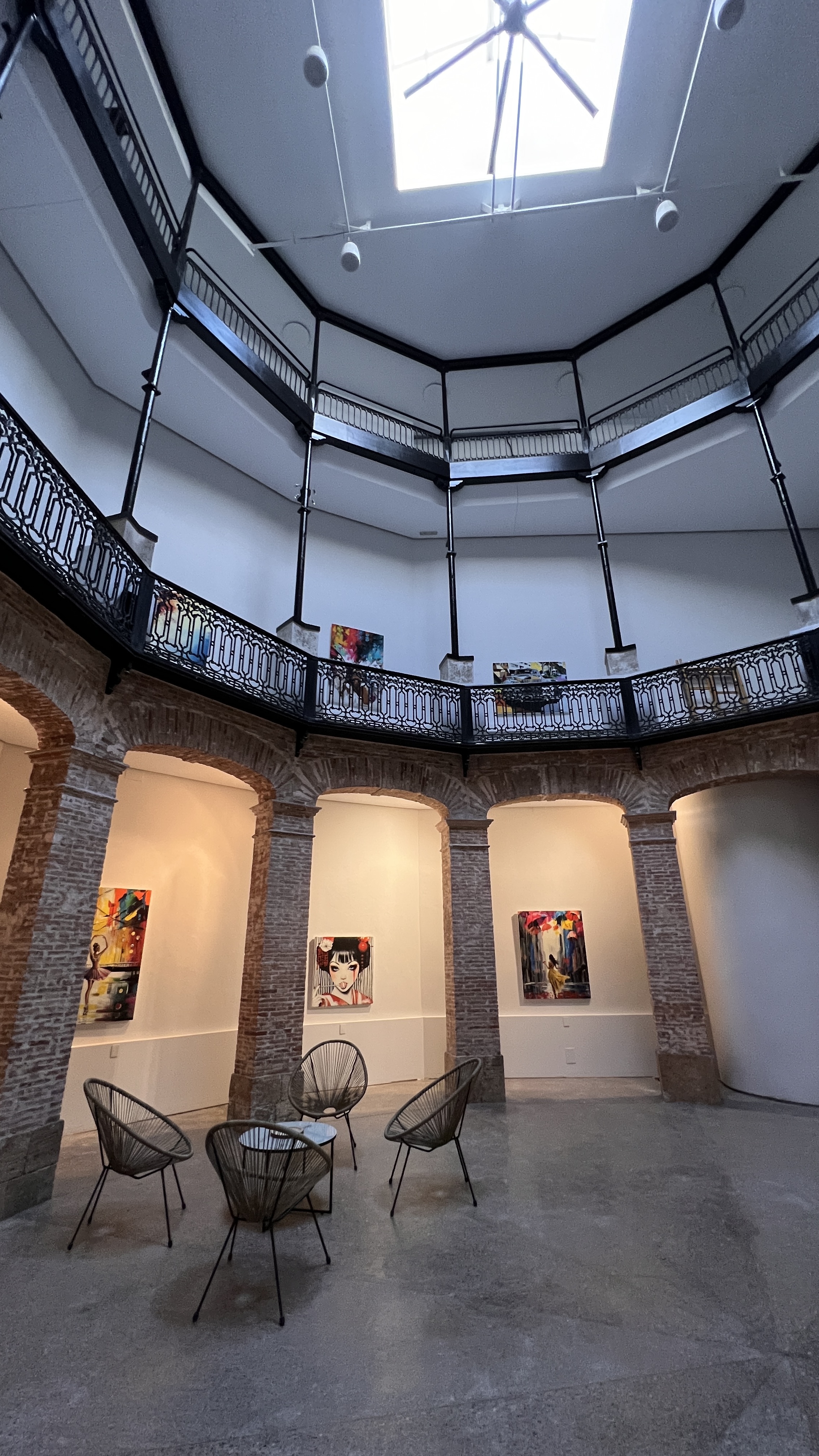 Este gran proyecto nos ha inspirado a liberar nuestra creatividad, respetando el diseño original. Con una acústica e iluminación natural maravillosa, debido a la forma de su planta circular, tipología que en su momento se utilizaba con gran éxito para teatros. Hemos reconstruido los aseos según la normativa actual, así como el acceso y las escaleras. Se agrego iluminación e hilo musical así como ventilación y aire acondicionado.