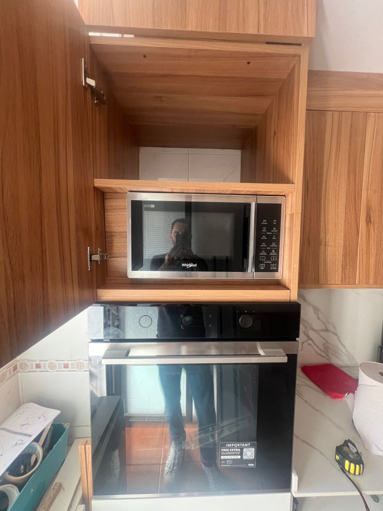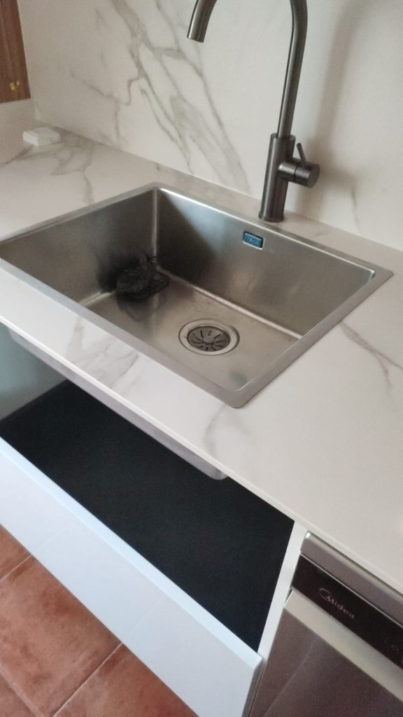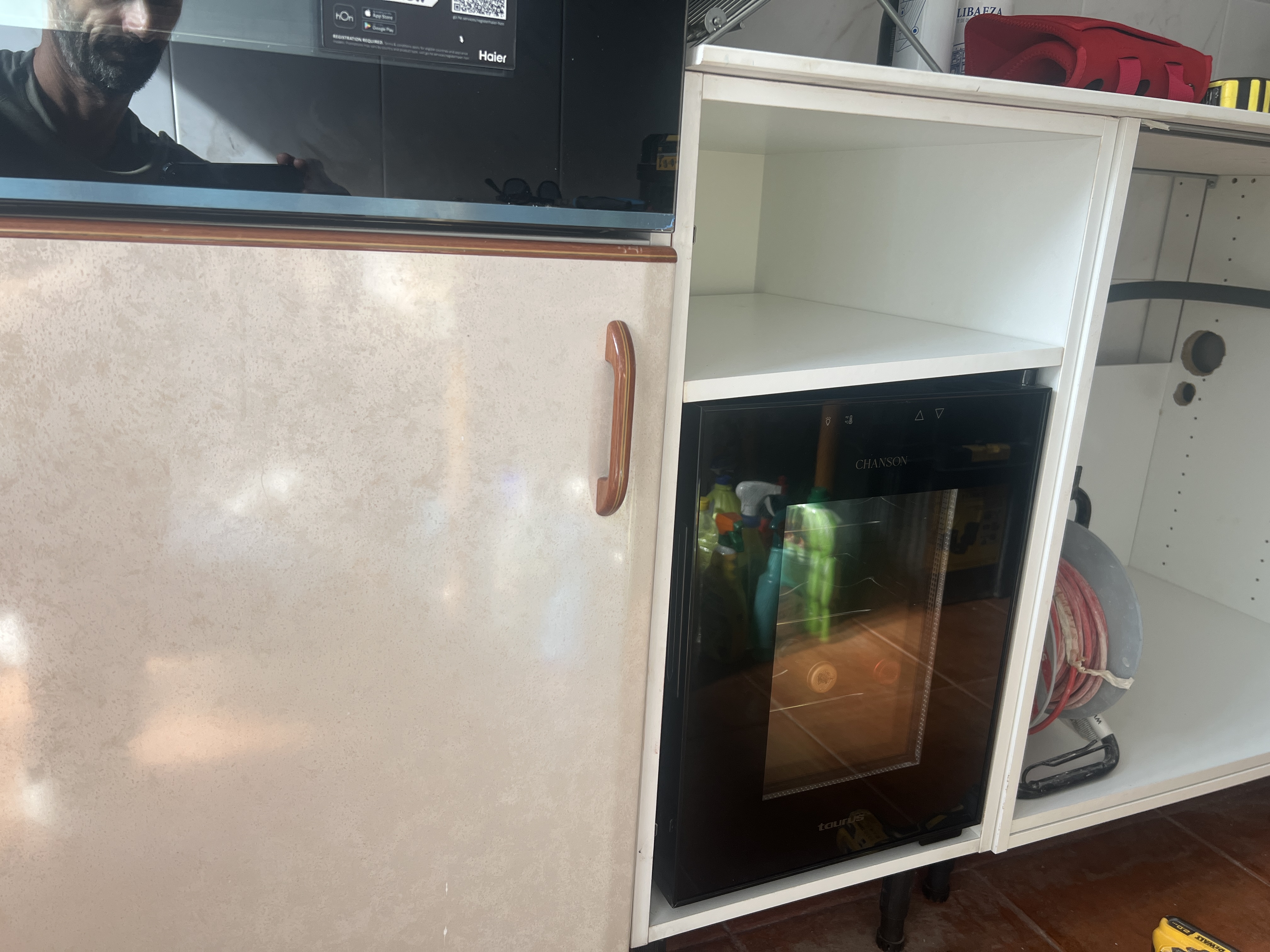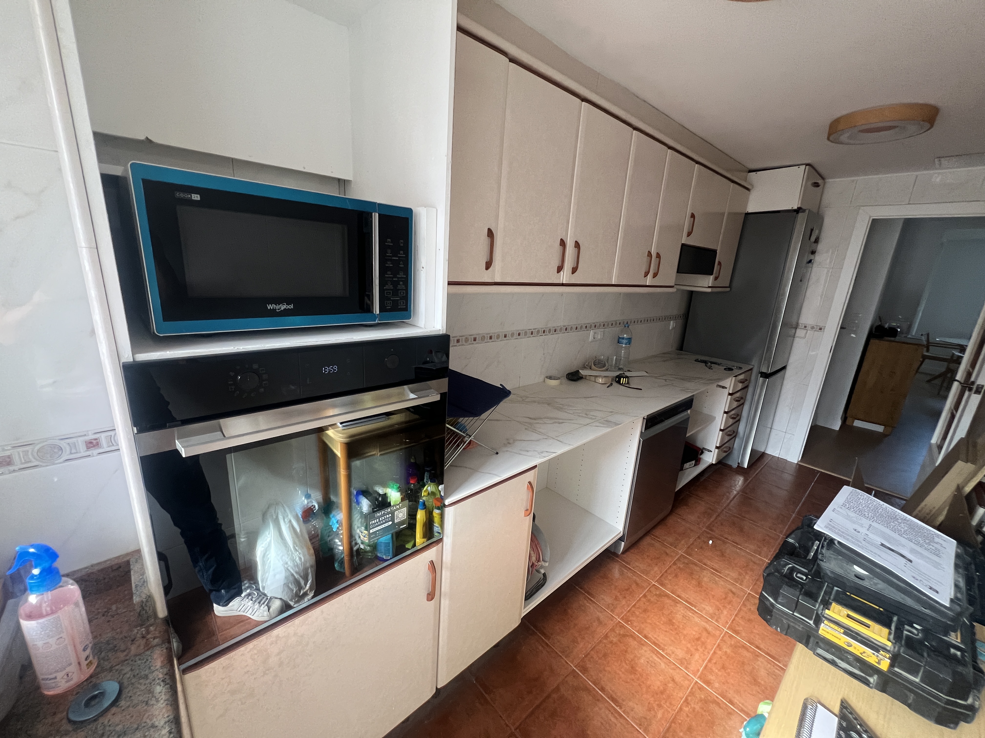 Problema inicial: Falta de espacio de almacenamiento, suelos desgastados y distribución sala poco eficiente. Cocina de origen.